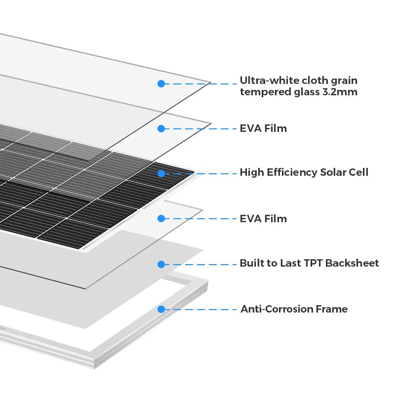 Each solar panel isbuilt with premium components and precision manufacturing to ensure excellent solar conversion efficiency and a longer lifespan.