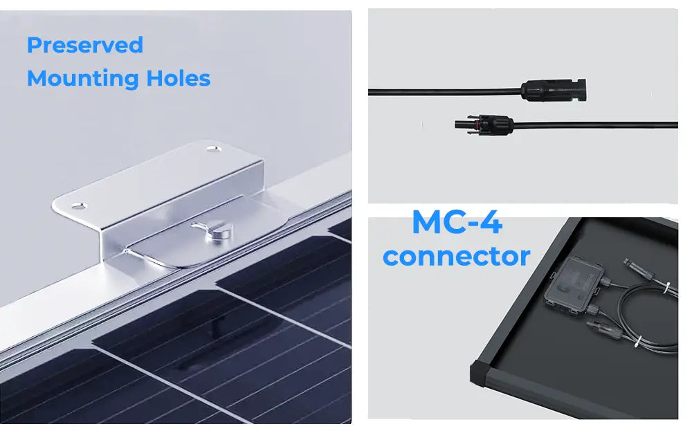 Easy to install, pre-drilled mounting holes; MC-4 connector