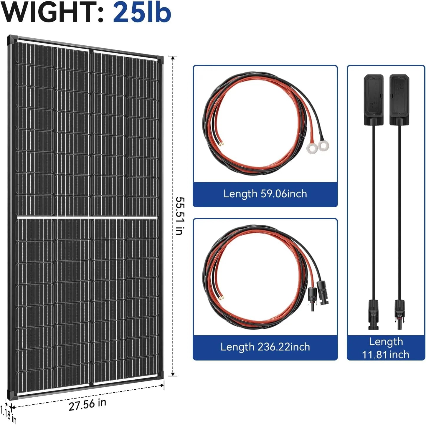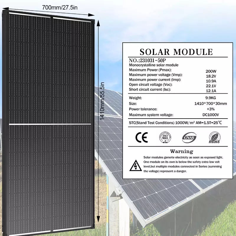 The optimized size of the 200W solar panel not only saves space but also ensures high photovoltaic efficiency, providing ample energy to meet your power needs.