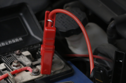 2.The red clip (+) is connected to the positive terminal of the car battery .The black clip (-) is connected to the negative terminal of the car battery.
